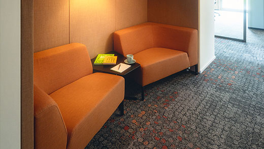 Im zweiten Obergeschoss sorgt eine kleine Leseecke mit Soft-Seating Elementen sowie geräuschmindernden Akustik-Wandpanelen für einen angenehmen Rückzugsort um ungestört konzentriert zu lesen oder Telefonate zu führen.