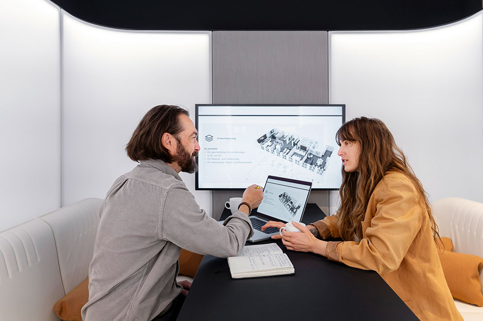 We work with you to develop a customised concept for an ergonomic, modern and creative space solution. You will benefit from our interdisciplinary team, which is made up of: Quality office consultants, interior architects, health experts, occupational psychologists and an in-house carpentry workshop. This is how we make your individual workplace design of the future possible.